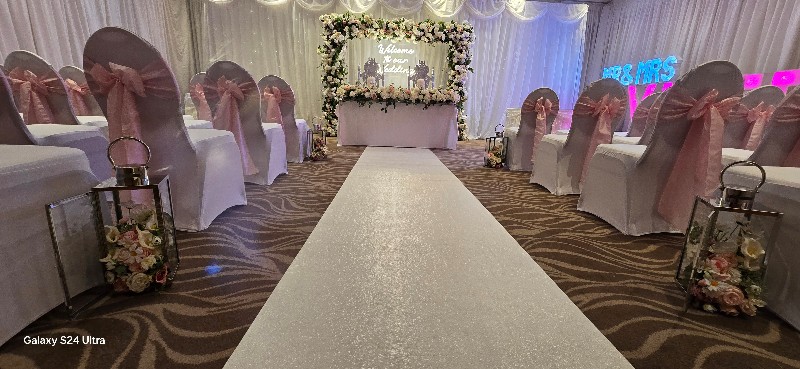 JK Weddings and Events offers a wide range of services at the Copthorne Hotel to make your special day truly unforgettable. Our team specialises in elegant chair covers, stunning flower displays, and breathtaking blossom trees to add a touch of beauty to your venue. We also provide luxurious wedding thrones for the happy couple, along with LED dance floors and illuminated walkways to create a magical atmosphere.