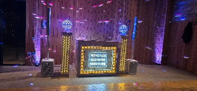 Wedding Package 1 – Excellent Disco set up with a high-quality Sound System and a Fantastic Light Show, Black Dj Booth